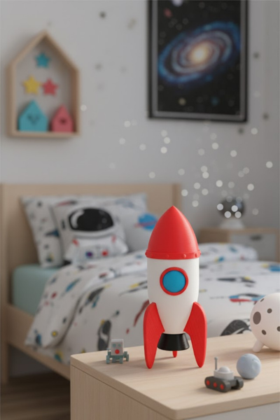 Leve a imaginação para as estrelas com o nosso incrÃvel Foguete Impresso em 3D! Perfeito para decorar o quarto dos pequenos astronautas ou para colecionadores apaixonados pelo universo, este foguete é uma peça que faltava para um toque de aventura e modernidade.